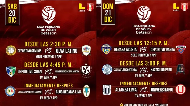 El clásico se jugará el domingo 21 de diciembre, en el Coliseo Miguel Grau, desde las 17:00 en Perú, Colombia y Ecuador. En Venezuela, Bolivia y Miami comenzará a las 18:00, mientras que en Uruguay, Paraguay, Chile, Argentina y Brasil será a las 19:00.