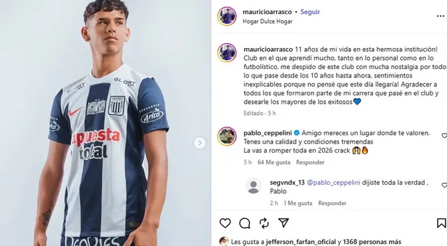 La despedida de Mauricio Arrasco de Alianza Lima no pasó desapercibida y el mensaje de Pablo Ceppelini encendió la conversación entre los hinchas, dejando abierta la discusión sobre el trato a los jugadores formados en casa.