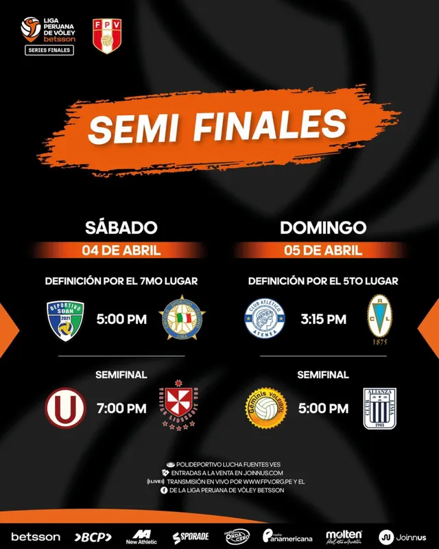 El encuentro se jugará este sábado 4 de abril en el Polideportivo Lucha Fuentes, en Villa El Salvador, un escenario que ya se ha vuelto casa del vóley nacional y que promete buen ambiente para cerrar la temporada. Tiene capacidad para unas 6 mil personas, y si eres de los que disfruta el vóley en vivo, ya sabes que ahí se vive distinto.