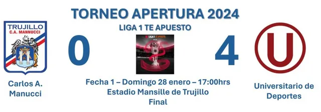 La espera ha concluido y la emoción del fútbol regresa con fuerza este domingo 28 de enero, cuando Universitario se enfrente a Mannucci en el Estadio Mansiche de Trujillo. El esperado encuentro marca el inicio de la jornada 1 del Torneo Apertura de la Liga 1 y se transmitirá EN VIVO y EN DIRECTO a través de GOLPERU, el canal deportivo por excelencia.