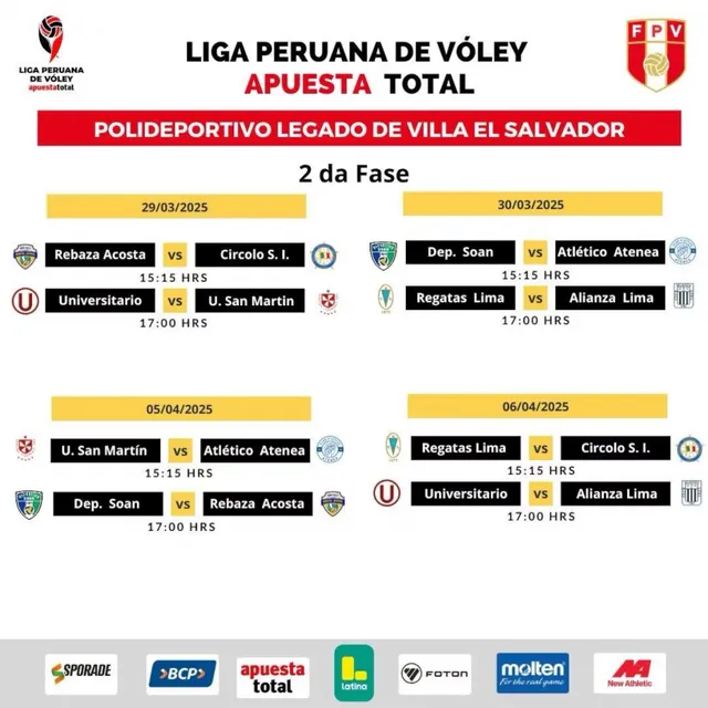 La Liga Peruana de Vóley 2025 entra en su segunda fase con una serie de partidos decisivos que definirán tanto a los aspirantes al título como a los equipos que lucharán por la permanencia en la máxima categoría. El Polideportivo de Villa El Salvador será el escenario de estos encuentros, donde la emoción y la competitividad estarán aseguradas.