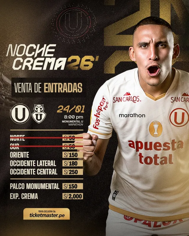 El plato fuerte llegará el 24 de enero con la tradicional Noche Crema. Universitario presentará oficialmente a su plantel y cerrará la jornada con un amistoso ante Universidad de Chile, desde las 8:00 p.m., con transmisión de TV Perú. Una noche que suele marcar el pulso anímico del hincha antes del arranque oficial.