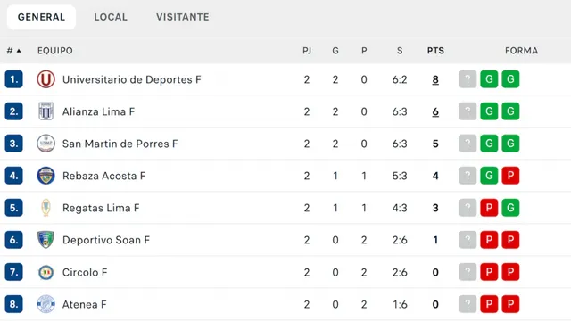 Recordemos que Universitario partió con dos puntos de bonificación por haber quedado en primer lugar en la fase inicial. Esto le ha permitido mantenerse en lo más alto de la tabla con un total de ocho unidades.