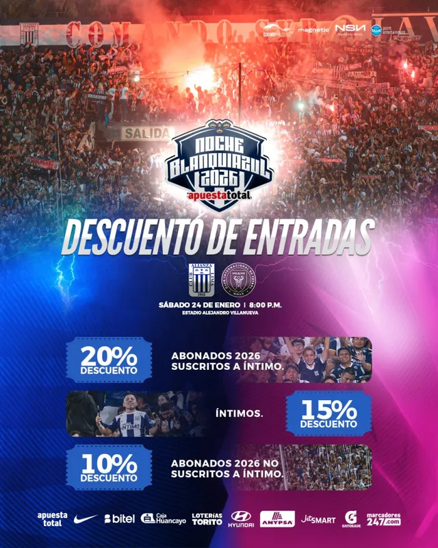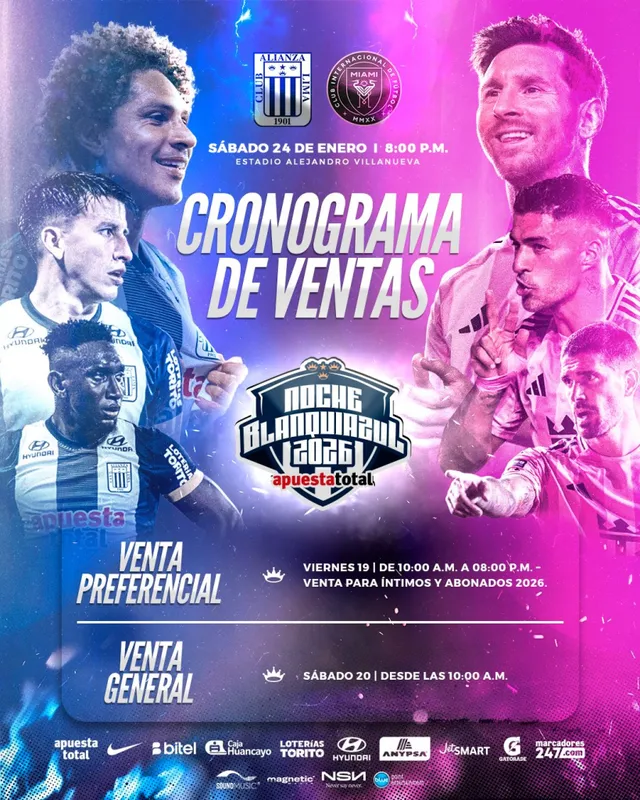La Noche Blanquiazul 2026 promete meterle electricidad a Matute. Alianza Lima presentará a su plantel el próximo 24 de enero y lo hará con un rival que, por sí solo, ya revienta cualquier taquilla: Inter Miami, el equipo que trae a Lionel Messi. Para muchos hinchas, puede ser de las últimas chances de verlo en Perú, y eso explica por qué la expectativa anda por las nubes. Este jueves salieron los precios oficiales y, como era de esperarse, la conversación no tardó en encenderse.
