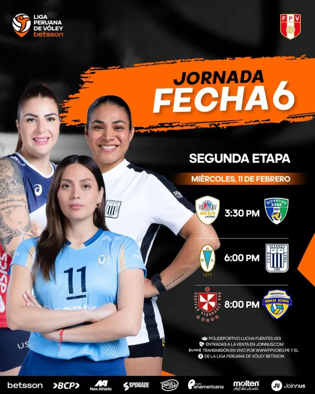 La Federación Peruana de Vóley dio a conocer la programación oficial de esta fecha, correspondiente a la segunda etapa de la Liga Peruana de Vóley Betsson 2025-2026, que se jugará en dos bloques a lo largo de febrero. El primer día de acción será el miércoles 11, con tres partidos que captan la atención de los hinchas.