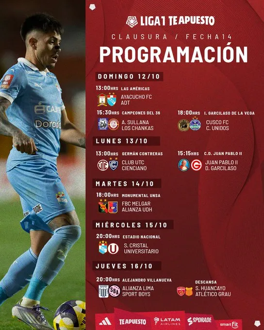 El fútbol peruano no se toma descanso y la Liga1 Te Apuesto 2025 sigue encendida. Luego del amistoso entre la selección peruana y Chile por la fecha FIFA, el balón volverá a rodar con la fecha 14 del Torneo Clausura, una jornada que promete emociones fuertes y partidos claves en la pelea por el título y la permanencia.