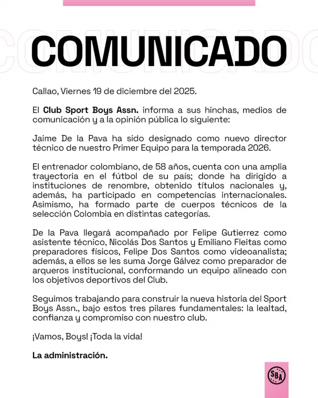 En el Callao vuelve a sentirse esa mezcla de ilusión y expectativa que tanto extrañaba la hinchada rosada. Sport Boys dio un golpe sobre la mesa y anunció oficialmente a su nuevo director técnico para la temporada 2026, apostando por un nombre con recorrido y espalda internacional para cambiar la historia reciente del club.