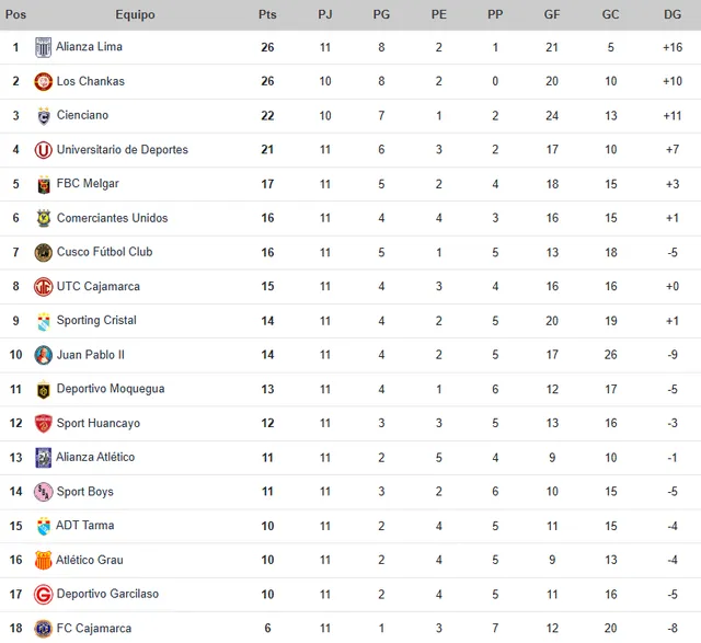 La fecha 10 del Torneo Apertura 2026 entra en su tramo final y la tabla de posiciones está más apretada que nunca. Mientras Alianza Lima y Los Chankas comparten la cima.