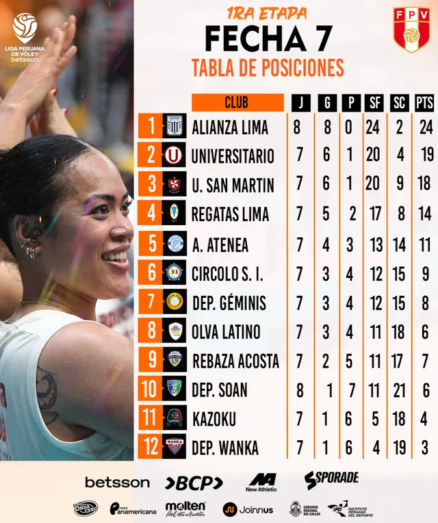 La séptima fecha de la Liga Peruana de Vóley 2025/26 dejó varios movimientos interesantes en la tabla. El Coliseo Miguel Grau del Callao volvió a vibrar con cinco encuentros que, poco a poco, empiezan a separar a los equipos que van por arriba de los que aún buscan acomodarse en la primera fase.
