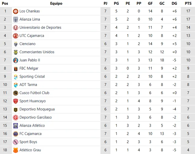 Pero la sorpresa de la jornada llegó desde Chongoyape. Los Chankas CYC protagonizaron un partidazo frente a Juan Pablo II College y se llevaron un triunfo lleno de emociones: 3-2. Ese resultado no solo les dio tres puntos valiosos, también les permitió alcanzar los 17 puntos, los mismos que tiene Alianza Lima, por lo que ambos comparten el primer lugar del campeonato.