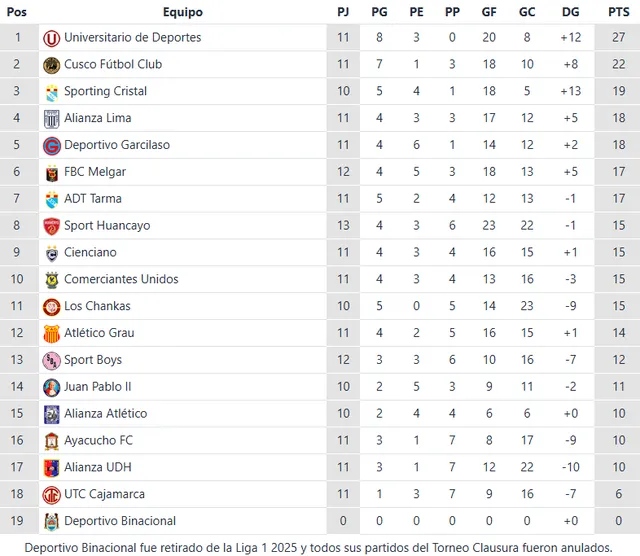 El Torneo Clausura 2025 está que arde 🔥. Con Universitario de Deportes liderando la tabla y cada jornada dejando sorpresas, la fecha 13 llegó cargada de goles, drama y partidos clave tanto arriba como abajo en la clasificación. La lucha por el título sigue al rojo vivo, mientras algunos equipos pelean con todo por no complicarse en la zona de descenso.