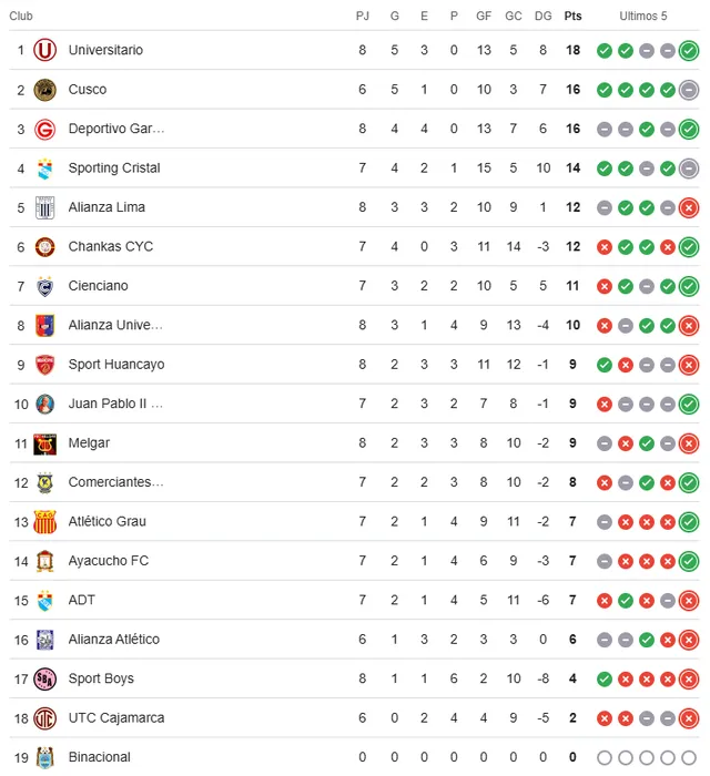 ¿Y Alianza Lima? Pues los íntimos la pasaron mal en Matute ante Deportivo Garcilaso. En un partido de locos, los cusqueños sorprendieron con un 4-3 y dejaron al equipo de Restrepo con 12 puntos. Garcilaso, con esa victoria, trepó a 16 y también se mete a la pelea.
