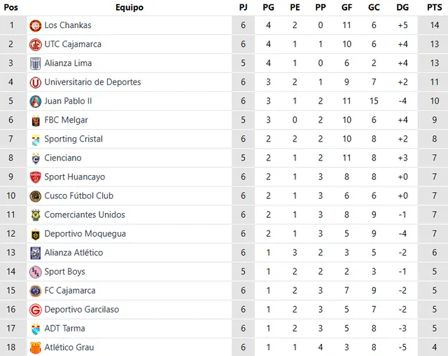 La fecha 6 del Torneo Apertura 2026 dejó resultados que sacudieron la tabla: Los Chankas derrotó 3-1 a Universitario en Andahuaylas y se convirtió en el nuevo líder del campeonato.