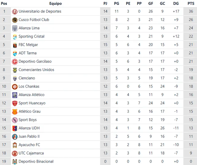 Con el triunfo, la ‘U’ sumó 36 puntos y sigue invicta en el Clausura, siendo el único equipo que no ha perdido en el torneo. Cusco FC se mantiene como su principal perseguidor, mientras que Alianza Lima ocupa el tercer lugar, aún con chances matemáticas, aunque con menos margen de error.