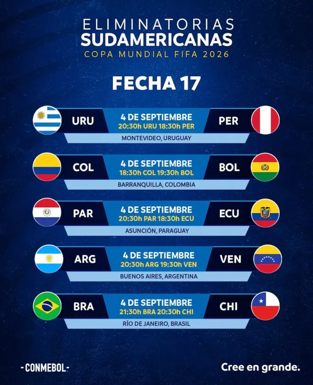 Se viene la jornada 17 de las Eliminatorias rumbo al Mundial 2026 y, como siempre pasa en Sudamérica, la cosa está que arde. Entre lágrimas, esperanzas, equipos ya clasificados y otros aferrándose a la calculadora, esta fecha promete ser de esas que marcan historia.