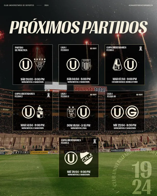 Fecha 2 📅 Martes 14 de abril – 9:00 p.m. Universitario vs Coquimbo Unido 📍 Estadio Monumental (Lima)
