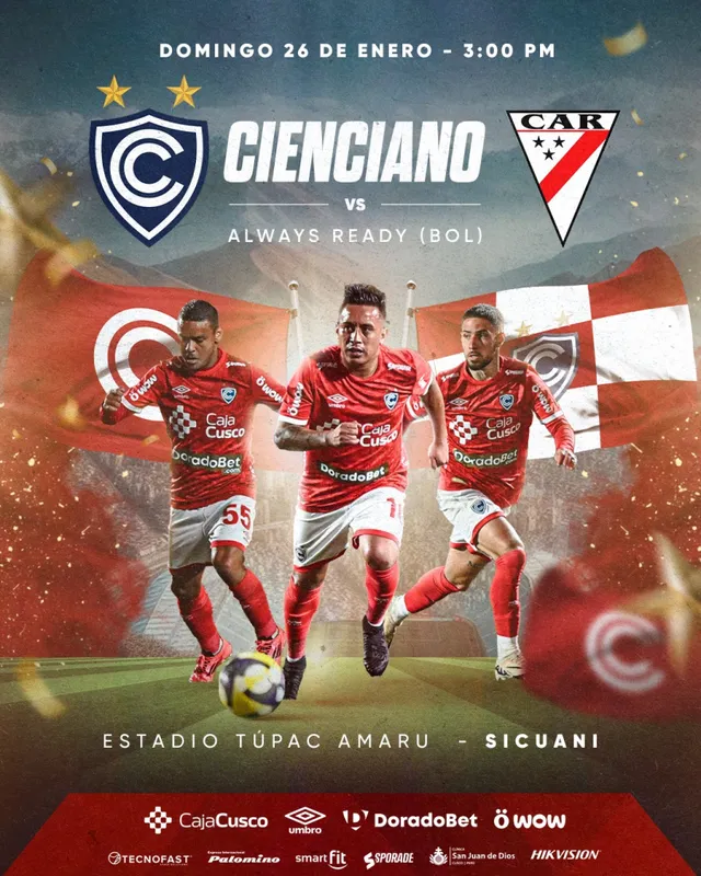 Tras una contundente victoria por 4-0 frente a Jorge Wilstermann en su presentación oficial, Cienciano continuará su pretemporada enfrentando a Always Ready, uno de los equipos más destacados de Bolivia. El amistoso se disputará el domingo 26 de enero a las 3:00 p.m. en el Estadio Túpac Amaru, en Sicuani, un escenario emblemático para el club.